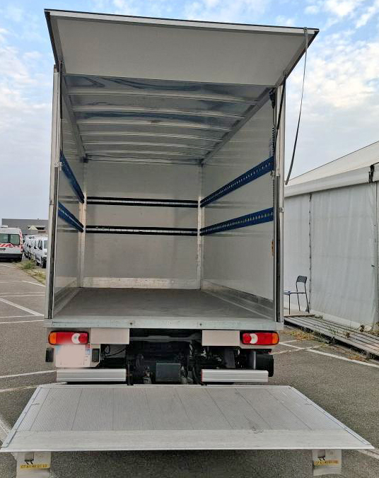 Ausstattung: ABS/ASR, Klima, Navigation, elektr. FH + Spiegel, Tempomat, ZV mit Fernbed., Radio mit NAVI, Lenkradbedienung und Bluetoothfreispreicheinrichtung, Komfortfahrersitz mit Armlehne, Beifahrerdoppelsitzbank, Kofferaufbau mit hydr. Ladebordwand (750 Kg Hubkraft) Rückfahrkamera, Laderraumbeleuchtung, div. Zurrleistenreihen und Filzanschlagleisten rundum etc.