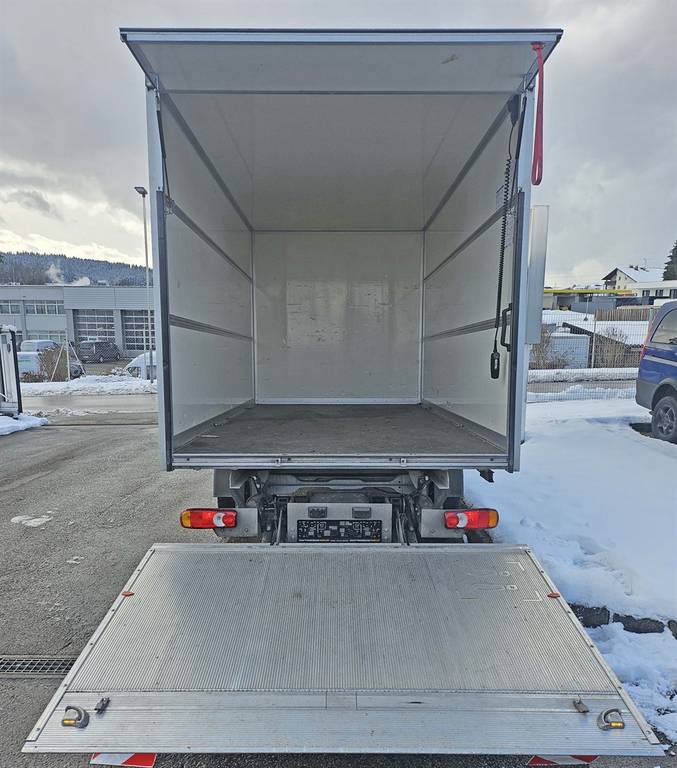 Ausstattung: ABS/ASR, Klima, elektr. FH + Spiegel, Tempomat, ZV mit Fernbed., Radio mit Bluetoothfreispreicheinrichtung, Komfortfahrersitz mit Armlehne, Beifahrerdoppelsitzbank, Rückfahrkamera, Dachspoiler, Kofferaufbau mit hydr. Ladebordwand (750 Kg Hubkraft), Plateau mit Fußsteuerung und Abrollsicherung, Laderraumbeleuchtung, div. Zurrleistenreihen rundum etc.